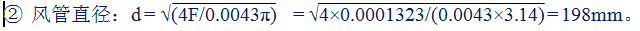 ① 風管截面積:F = Q/(3600υ) = 16.67/(3600×35) = 0.0001323m2。