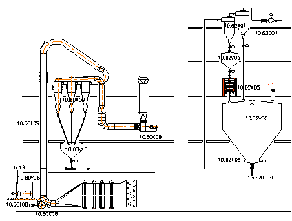 通常玉米粉氣流干燥的旋風分離器布置和安裝在三樓或四樓,玉米粉輸送風管就布置和安裝在玉米粉干燥的旋風分離器下面(在二樓或三樓)。