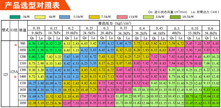 其流量從0.52m3/min-180m3/min,升壓值由9.8Kpa-98Kpa不等,總共二十種機型,2500多種參數規格,且有體積小,流量大,噪音低,運行平穩可靠等特點,相應的主流型號有:TSR50、TR65、TSR80、TSR100、TSR125、TSR150、TSR175、TSR200 、TSR250、TSR300、TSR350型。對應的電機功率從0.75kw-355kw。種類齊全,可滿足不同用戶不同用途的需要.